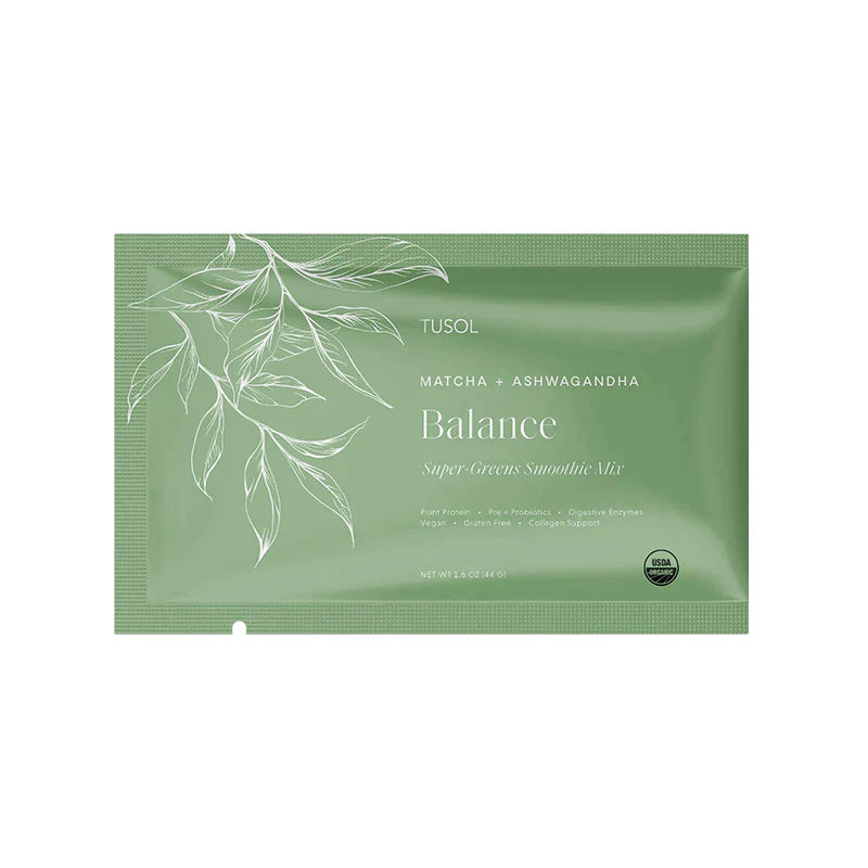 This Matcha + Vanilla Smoothie is designed to help reduce stress, promote gut health and stimulate detoxification. Pumpkin seeds, matcha and ashwagandha assist in balancing cortisol levels, while spirulina, wheatgrass and barley grass help support internal cleansing. Added prebiotics, probiotics and enzymes give this smoothie an extra boost to nourish the microbiome and eliminate bloat.