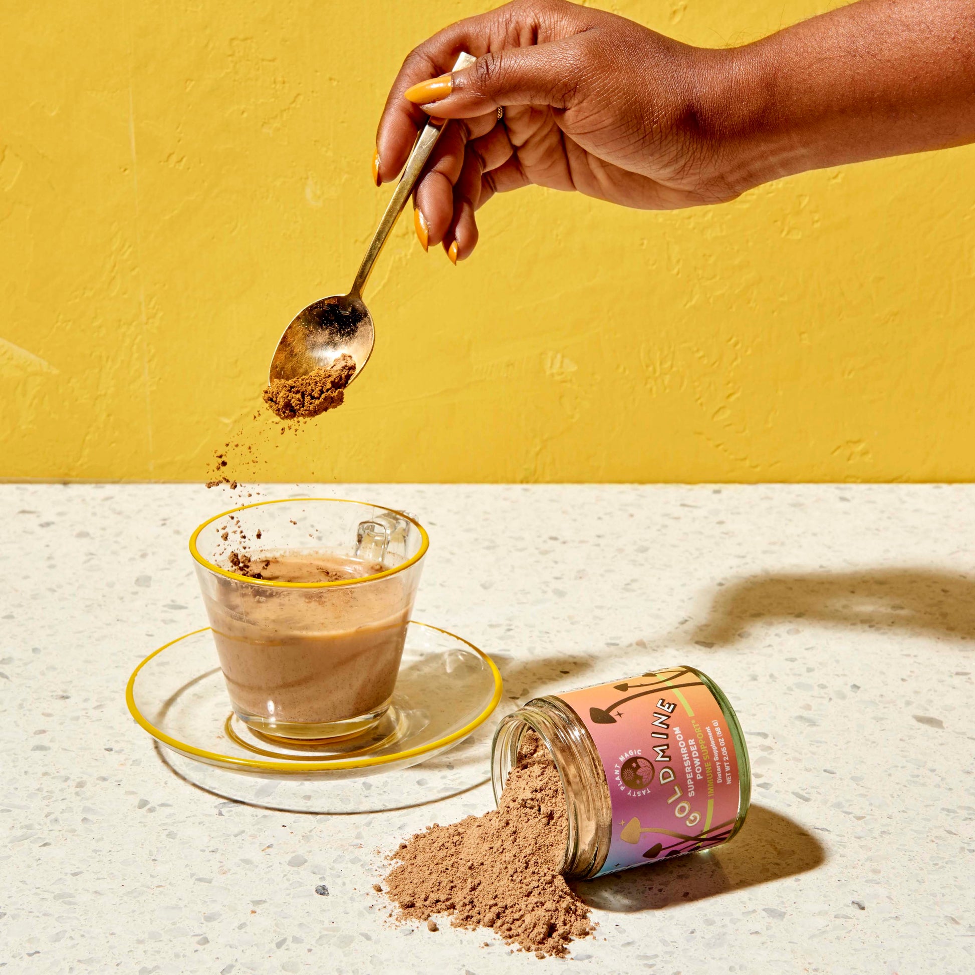 Goldmine Supershroom Immunity Support is a blend of immune boosting mushrooms and herbs paired with lucuma and ginger for easy drinking. Nutrient dense and packed with our favorite anti-inflammatory immune protecting compounds, polysaccharides, this blend supports + strengthens the immune system. Drink on its own or add to your favorite beverage.